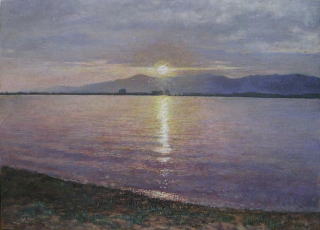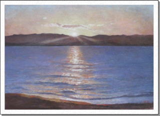 太陽の光と暖かいかけらが湖に吸い込まれていく様子です。