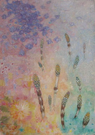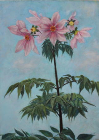 暖かい色を浴びて、空に向かって成長しようとする芽を描きました。