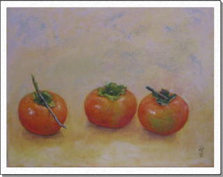 艶やかな渋カキは、冷たい風にさらされて、甘みと深み、刻のある朱色へと。