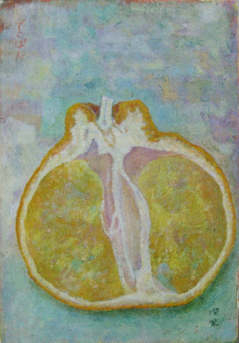 柑橘類の中で、わたしが一番好きな果物です。独特のカタチの中には。みずみずしく甘酸っぱい果汁が詰まっています。断面図からは爽やかな色と香りが溢れ出してきました。