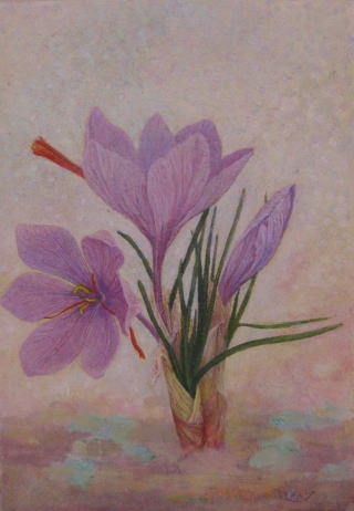 サフランの鮮やかな赤紫と花びらの模様、大変美しいです。