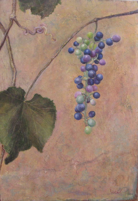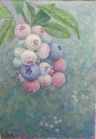 ブルーベリーの実がこれから実り 熟していく様子や過程を想像しながら描きました。